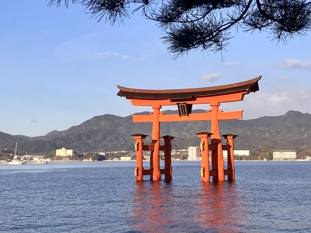 朝6時すぎに氏神様である多家神社へお参りをし、その後、電車で宮島へ向かいました。