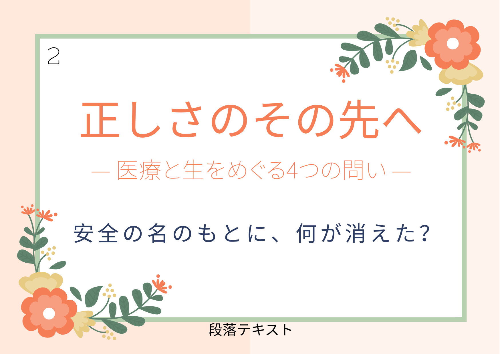 医療が「安全第一」「エビデンス重視」を掲げれば掲げるほど、現場からは判断の余地が、静かに消えていく。